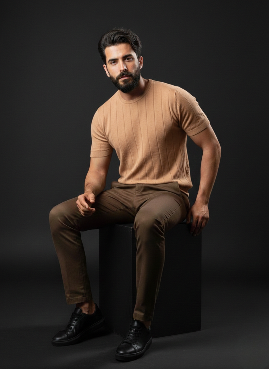 100% cotton knit with vertical rib texture